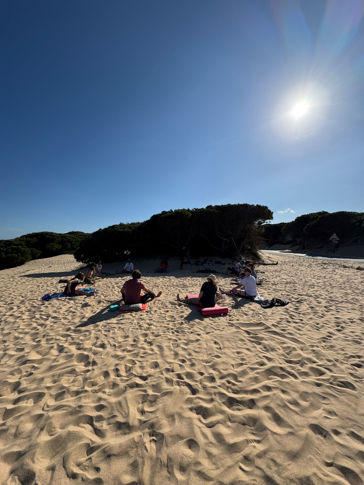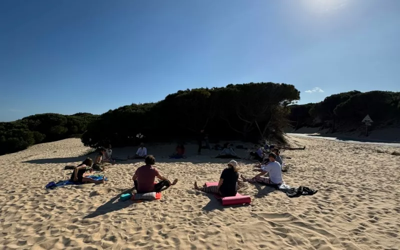 Godzinę wieczornych zajęć dobraliśmy tak, aby można było spędzić cały dzień na eksploracji okolic w swoim rytmie, a po praktyce wybrać się na kolację do pobliskiej Tarify lub zjeść na miejscu (kolacje podawane są od 19:30). Dlatego zajęcia wieczorne zaplanowaliśmy na godzinę 18:00 – aby wyciszyć ciało i umysł oraz dać sobie przestrzeń na odpoczynek.