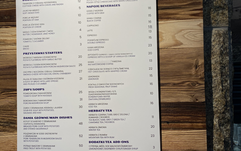 Na potrzeby naszego warsztatu zdecydowaliśmy się na wspólne śniadania, które są wliczone w cenę pobytu. Pozostałe posiłki – obiady i kolacje – każdy uczestnik opłaca indywidualnie, zgodnie ze swoimi potrzebami i preferencjami. Do dyspozycji pozostaje zarówno restauracja hotelowa, jak i pobliskie schroniska, w których można spróbować lokalnych smaków. Dzięki temu każdy z nas ma pełną swobodę i elastyczność w doborze diety.