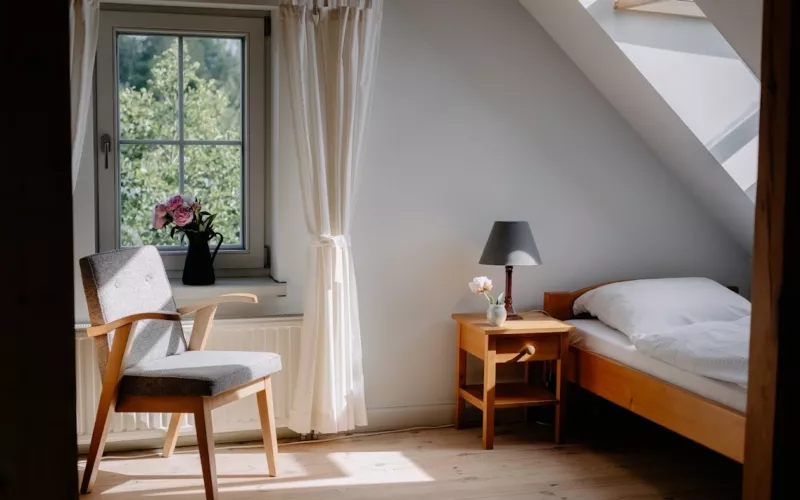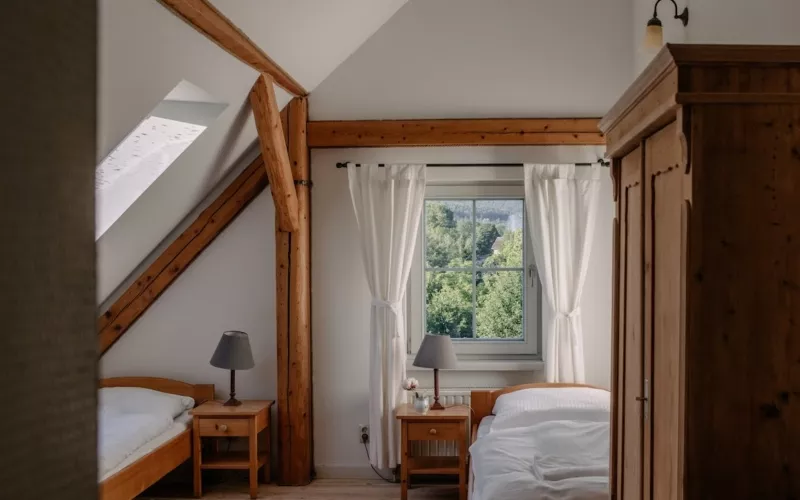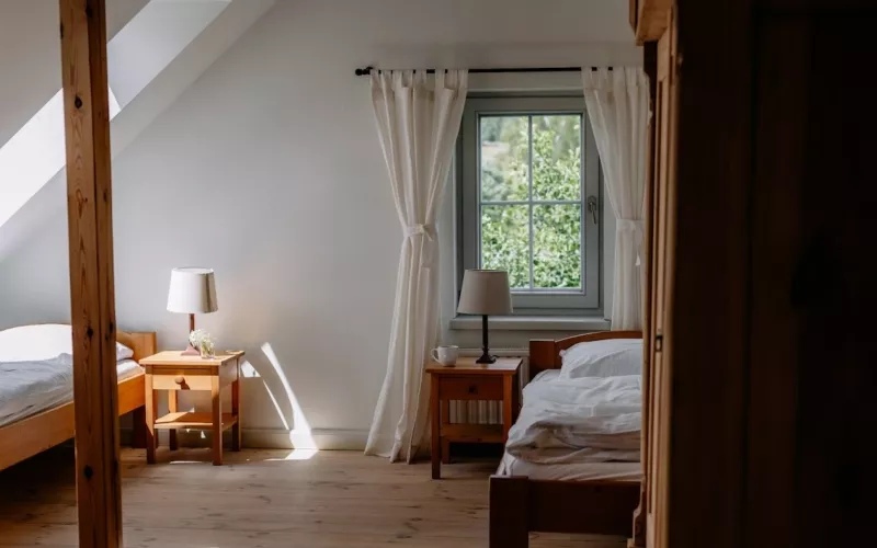 W Białym Domu czeka na Ciebie komfortowe zakwaterowanie w pokojach 2- i 3-osobowych z prywatnymi łazienkami. Pokoje są jasne, urządzone z prostotą i smakiem – dominują naturalne materiały, drewno i stonowane kolory, które tworzą atmosferę spokoju. Pokoje są przestrzenne z dużymi oknami i z widokami na góry, lasy i łąki. Każdy pokój ma swoją łazienkę z prysznicem, a przytulne wnętrza sprzyjają regeneracji po intensywnym dniu.